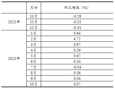 根據(jù)季節(jié)調(diào)整模型自動修正的結(jié)果,對2022年10月份以來的社會消費品零售總額環(huán)比增速進行修訂。修訂結(jié)果及2023年10月份環(huán)比數(shù)據(jù)如下: