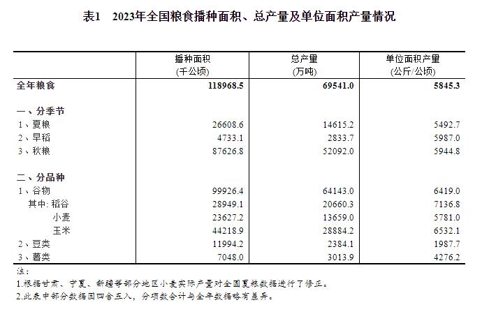 關于2023年糧食產量數據的公告