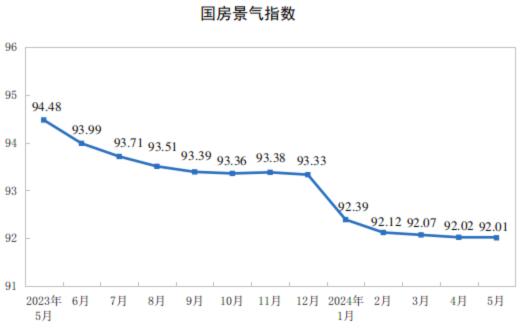 5月份,房地產(chǎn)開(kāi)發(fā)景氣指數(shù)(簡(jiǎn)稱“國(guó)房景氣指數(shù)”)為92.01。