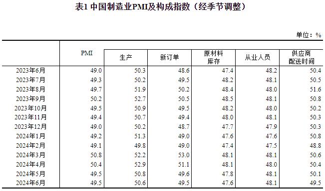 2024年6月中國采購經(jīng)理指數(shù)運(yùn)行情況