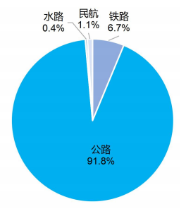 圖5 2024年?duì)I業(yè)性貨運(yùn)量構(gòu)成(按運(yùn)輸方式分)