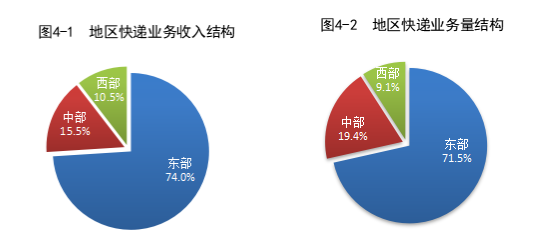 1—7月,東、中、西部地區(qū)快遞業(yè)務(wù)收入比重分別為74.0%、15.5%和10.5%,快遞業(yè)務(wù)量比重分別為71.5%、19.4%和9.1%。與去年同期相比,東部地區(qū)快遞業(yè)務(wù)收入比重下降0.8個(gè)百分點(diǎn),快遞業(yè)務(wù)量比重下降1.4個(gè)百分點(diǎn);中部地區(qū)快遞業(yè)務(wù)收入比重上升0.5個(gè)百分點(diǎn),快遞業(yè)務(wù)量比重上升0.9個(gè)百分點(diǎn);西部地區(qū)快遞業(yè)務(wù)收入比重上升0.3個(gè)百分點(diǎn),快遞業(yè)務(wù)量比重上升0.5個(gè)百分點(diǎn)。