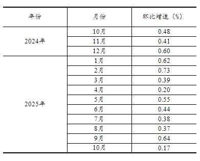 根據(jù)季節(jié)調(diào)整模型自動(dòng)修正結(jié)果,對(duì)2024年10月至2025年9月份規(guī)模以上工業(yè)增加值環(huán)比增速進(jìn)行修訂。修訂結(jié)果及2025年10月份環(huán)比數(shù)據(jù)如下: