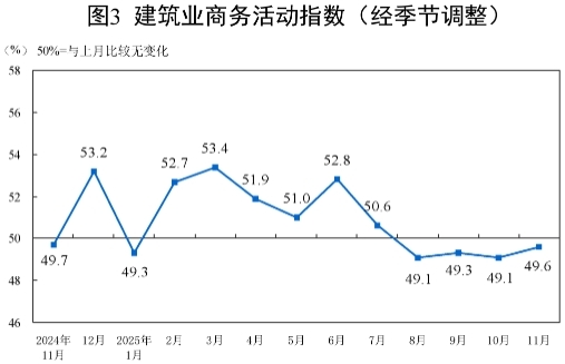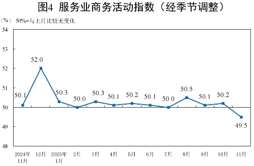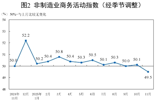 11月份,非制造業(yè)商務活動指數為49.5%,比上月下降0.6個百分點。