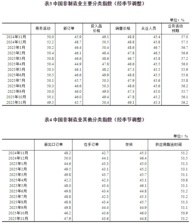 2025年11月中國采購經理指數運行情況