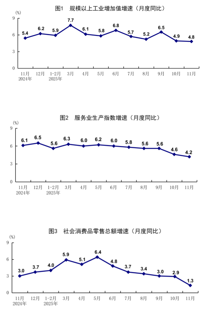 根據(jù)第五次全國經(jīng)濟(jì)普查結(jié)果對(duì)社會(huì)消費(fèi)品零售總額、網(wǎng)上零售額數(shù)據(jù)進(jìn)行了修訂,2025年社會(huì)消費(fèi)品零售總額、網(wǎng)上零售額相關(guān)指標(biāo)月度增速按照可比口徑計(jì)算。