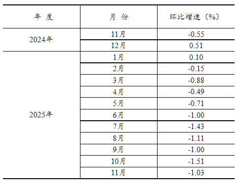 根據(jù)季節(jié)調(diào)整模型自動修正結(jié)果,對2024年11月份以來的固定資產(chǎn)投資(不含農(nóng)戶)環(huán)比增速進行修訂。修訂結(jié)果及2025年11月份環(huán)比數(shù)據(jù)如下: