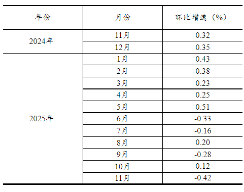 根據(jù)季節(jié)調(diào)整模型自動修正的結(jié)果,對2024年11月份以來的社會消費(fèi)品零售總額環(huán)比增速進(jìn)行修訂。修訂結(jié)果及2025年11月份環(huán)比數(shù)據(jù)如下: