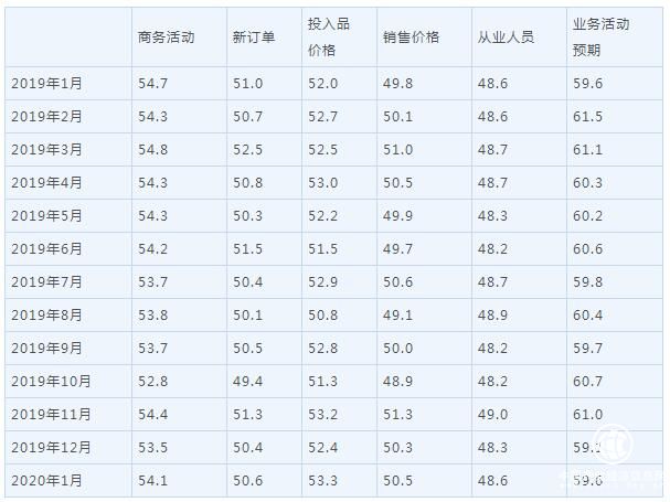 2020年1月份,非制造業(yè)商務(wù)活動(dòng)指數(shù)為54.1%,比上月上升0.6個(gè)百分點(diǎn),表明非制造業(yè)總體保持?jǐn)U張。