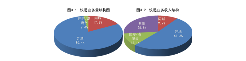1-4月份,同城、異地、國(guó)際/港澳臺(tái)快遞業(yè)務(wù)量分別占全部快遞業(yè)務(wù)量的17.2%、80.4%和2.4%;業(yè)務(wù)收入分別占全部快遞收入的9.9%、51.2%和12.1%。與去年同期相比,同城快遞業(yè)務(wù)量的比重下降1.8個(gè)百分點(diǎn),異地快遞業(yè)務(wù)量的比重上升1.7個(gè)百分點(diǎn),國(guó)際/港澳臺(tái)業(yè)務(wù)量的比重上升0.1個(gè)百分點(diǎn)。