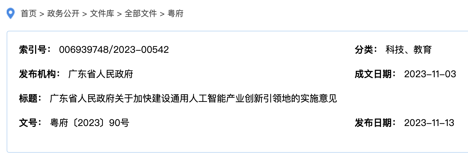 11月13日,廣東省人民政府發(fā)布了加快建設(shè)通用人工智能產(chǎn)業(yè)創(chuàng)新引領(lǐng)地的實(shí)施意見。