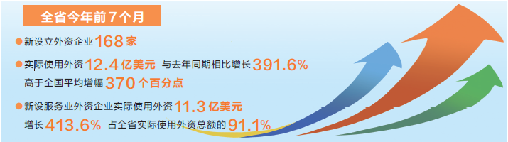 在投資規(guī)模不斷擴(kuò)大的同時(shí),河南省利用外資結(jié)構(gòu)也在優(yōu)化調(diào)整。前7個(gè)月,全省服務(wù)業(yè)領(lǐng)域使用外資繼續(xù)保持增長(zhǎng),新設(shè)服務(wù)業(yè)外資企業(yè)實(shí)際使用外資11.3億美元,增長(zhǎng)413.6%,占全省實(shí)際使用外資總額的91.1%。此外,全省新設(shè)高技術(shù)產(chǎn)業(yè)企業(yè)52家,涉及研發(fā)與設(shè)計(jì)服務(wù)、科技成果轉(zhuǎn)化等,將進(jìn)一步推動(dòng)河南省產(chǎn)業(yè)結(jié)構(gòu)轉(zhuǎn)型升級(jí)。