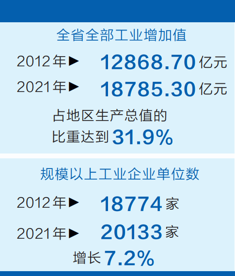 同時,河南省工業(yè)結(jié)構(gòu)優(yōu)化升級成效顯著,創(chuàng)新動能強(qiáng)勁。數(shù)據(jù)顯示,2013年至2021年,全省高技術(shù)制造業(yè)增加值年均增長17%,高出規(guī)模以上工業(yè)9.3個百分點。高技術(shù)制造業(yè)占規(guī)上工業(yè)的比重由2012年的5.6%提高到2021年的12%,對規(guī)上工業(yè)增長的貢獻(xiàn)率由13.7%提高到36.2%。截至2021年年末,全省工業(yè)領(lǐng)域戰(zhàn)略性新興產(chǎn)業(yè)增加值占規(guī)上工業(yè)比重達(dá)到24%,較2017年提高11.9個百分點。2017年至2021年,全省工業(yè)領(lǐng)域戰(zhàn)略性新興產(chǎn)業(yè)增加值年均增長10.9%,高出規(guī)上工業(yè)5個百分點。