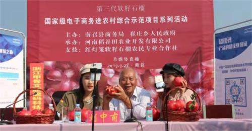 “網(wǎng)友們大家好,我是南召縣崔莊鄉(xiāng)鄉(xiāng)長陳震,我們崔莊鄉(xiāng)位于八百里伏牛山南麓,這里好山好水,生態(tài)優(yōu)良,出產(chǎn)的然籽石榴籽粒飽滿、汁水豐盈、鮮甜爽口,歡迎廣大網(wǎng)友到崔莊鄉(xiāng)品嘗火紅的軟籽石榴……”面對手機屏幕,南召縣崔莊鄉(xiāng)長陳震正捧著紅彤彤的軟籽石榴向全國網(wǎng)友推介。