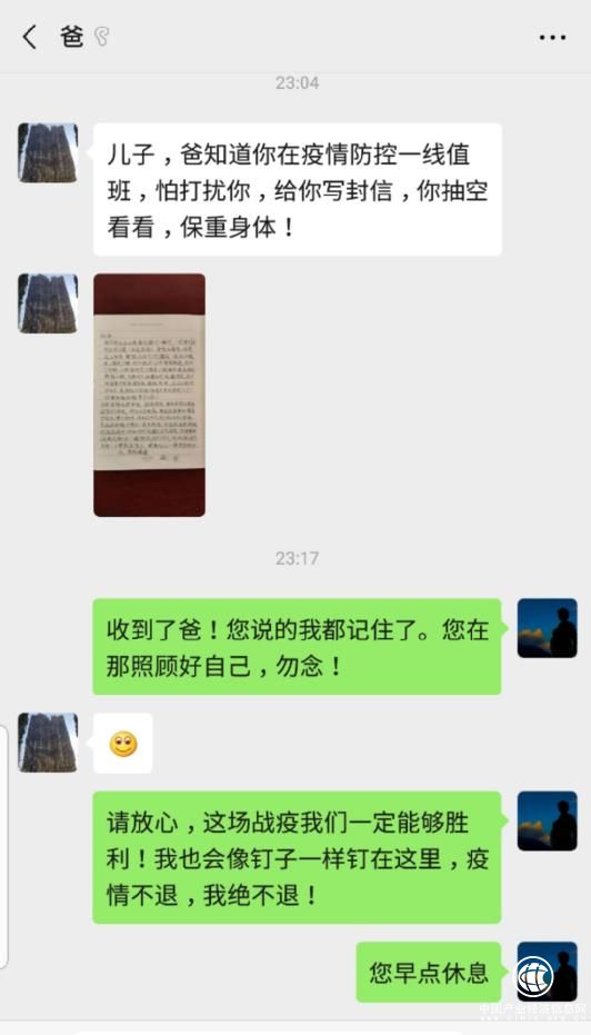 當(dāng)前疫情依然嚴(yán)峻,國(guó)難面前,要堅(jiān)決服從黨和國(guó)家的決定,聽(tīng)從公司安排。周南高速是服務(wù)豫西南疫情防控的干道,你又是這條線上的收費(fèi)員,要像釘子一樣堅(jiān)守崗位!在自己平凡的崗位上用擔(dān)當(dāng)和深情,為抗擊疫情而努力!我也相信,在這場(chǎng)沒(méi)有硝煙的狙擊戰(zhàn)中,你和你的同事們會(huì)為國(guó)家,為周南高速再立新功!爸預(yù)祝你們?cè)缛沾淀憚倮奶?hào)角!不要掛念家人。