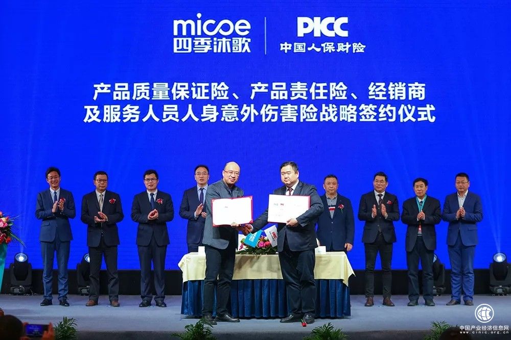 在本次會議上,四季沐歌與PICC的戰(zhàn)略合作再次續(xù)約,進行了“產(chǎn)品質(zhì)量保證險、產(chǎn)品責任險、經(jīng)銷商及服務人員人身意外傷害險”戰(zhàn)略簽約,詮釋企業(yè)擔當,也為品牌力的塑造和2021年四季沐歌經(jīng)銷商在市場上沖鋒陷陣再次賦能。