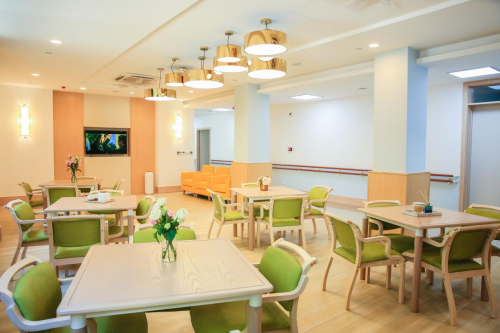 劉高安老?慈樂圓護理院坐落于蘇州古城姑蘇區(qū)莫邪路1288號,瀕臨護城河,與東園相望,憑欄遠眺,窗外四季風(fēng)景如畫,是老人休養(yǎng)的理想環(huán)境。來自臺灣的護理總監(jiān)陳老師向筆者介紹說,劉高安老?慈樂圓護理院成立于2019年,在設(shè)計立項之時,就將認知癥的照護做為重點和特點,從空間環(huán)境的設(shè)計改造、工作人員的培訓(xùn)、照護方法和工具的引入等方面都做了充分的準備。