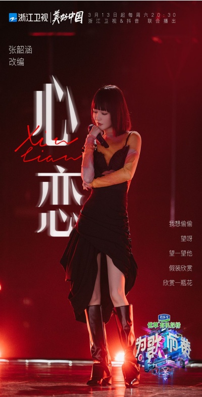 作為熱歌陣營成員之一的張韶涵,改編在抖音站內(nèi)爆火的熱歌《心戀》,并以全新面貌演繹歌曲。張韶涵以話劇形式呈現(xiàn)極致舞臺。