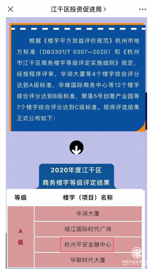 近日,杭州市江干區(qū)商務(wù)樓宇等級(jí)評(píng)定結(jié)果正式出爐,由平安不動(dòng)產(chǎn)匠心打造的杭州平安金融中心榮獲“A級(jí)”評(píng)定。