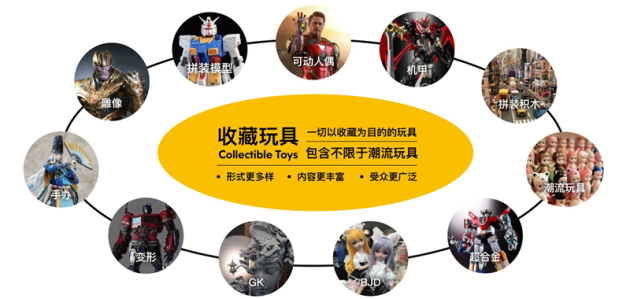 隨著消費認(rèn)知的升級加速,隨著盲盒的出圈,不同的玩家對于盲盒產(chǎn)品有自己不同的興趣和追求,用戶口味越發(fā)多元化,對玩具的形式和個性化要求也不斷提高。收藏玩具品類豐富,包含手辦、GK、BJD、潮流玩具、積木、可動人偶、拼裝模型、雕像等。收藏玩具對多元玩具文化的理解與探索,恰好符合了這一代年輕人的需求。越來越多的年輕人,愿意用收藏玩具來展示自己的美學(xué)理解,愿意將其融入自己的生活方式。