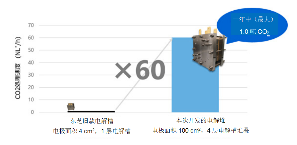 圖2:本次開發(fā)的CO2電解堆的CO2處理速度(*1)參考資料: