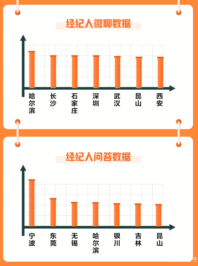二手房熱度經(jīng)紀(jì)人先知,58同城、安居客通過微聊數(shù)據(jù)統(tǒng)計(jì)顯示,3月份哈爾濱、長沙、石家莊、深圳、武漢等地購房者更愿意與經(jīng)紀(jì)人溝通,哈爾濱微聊數(shù)據(jù)環(huán)比漲幅最高。寧波、東莞、無錫、哈爾濱和銀川等城市經(jīng)紀(jì)人更樂于解答房產(chǎn)問題,經(jīng)紀(jì)人問答數(shù)據(jù)環(huán)比均出現(xiàn)2倍以上的漲幅,其中,寧波環(huán)比漲幅排名最高。對(duì)于目前二手房市場(chǎng),58同城、安居客《3月國民安居指數(shù)報(bào)告》數(shù)據(jù)顯示,2021年3月經(jīng)紀(jì)人信心指數(shù)為112.6,環(huán)比下跌1.0%。