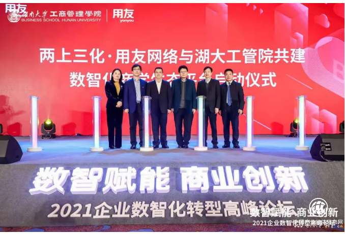 湖大工管院與用友從2019年開始戰(zhàn)略合作,經過2年的強強聯合,探索出了多方面、多形式的合作模式。會上,雙方聯合共建并發(fā)布了“數智化商學生態(tài)平臺”。利用湖南大學在企業(yè)管理領域的學術積累和資源優(yōu)勢,利用用友在數字化轉型過程中的實踐與技術,推動湖大自身數字化轉型與變革,以創(chuàng)新為先導,理論為支撐,實踐為行動,雙方共同打造面向中國的企業(yè)數字化管理與實踐體系融合平臺。并通過平臺,將國家戰(zhàn)略、學術理論、企業(yè)實踐結合,實現理論緊貼實踐,打造集群生態(tài),高效成果轉化。
