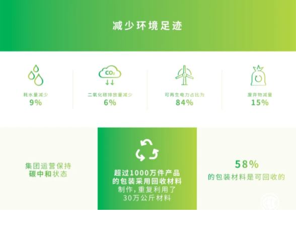 在2020年,集團不斷探索環(huán)保包裝材料。2020年集團大力支持循環(huán)經(jīng)濟,超過1000萬件產(chǎn)品的包裝采用回收材料制作,重復(fù)利用了30萬公斤材料,還推出了采用甘蔗渣原料且能生物降解的環(huán)境友好包裝,采用100%回收材料且可循環(huán)的玻璃瓶。合生元奶粉在中國也即將進行升級,預(yù)計用紙量至少較上一年減少2000噸。
