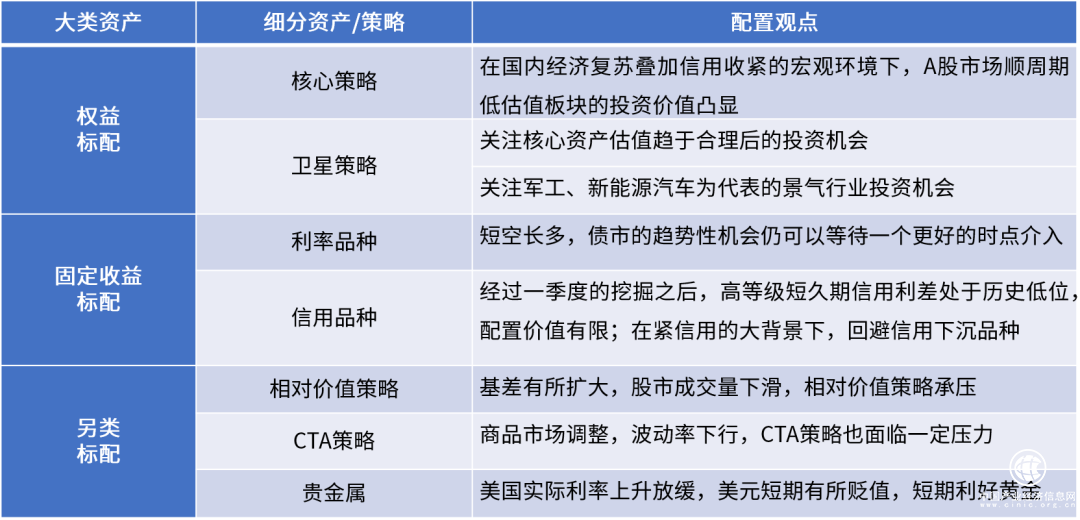 四、資產(chǎn)配置觀點(diǎn)與本月投資建議總結(jié)