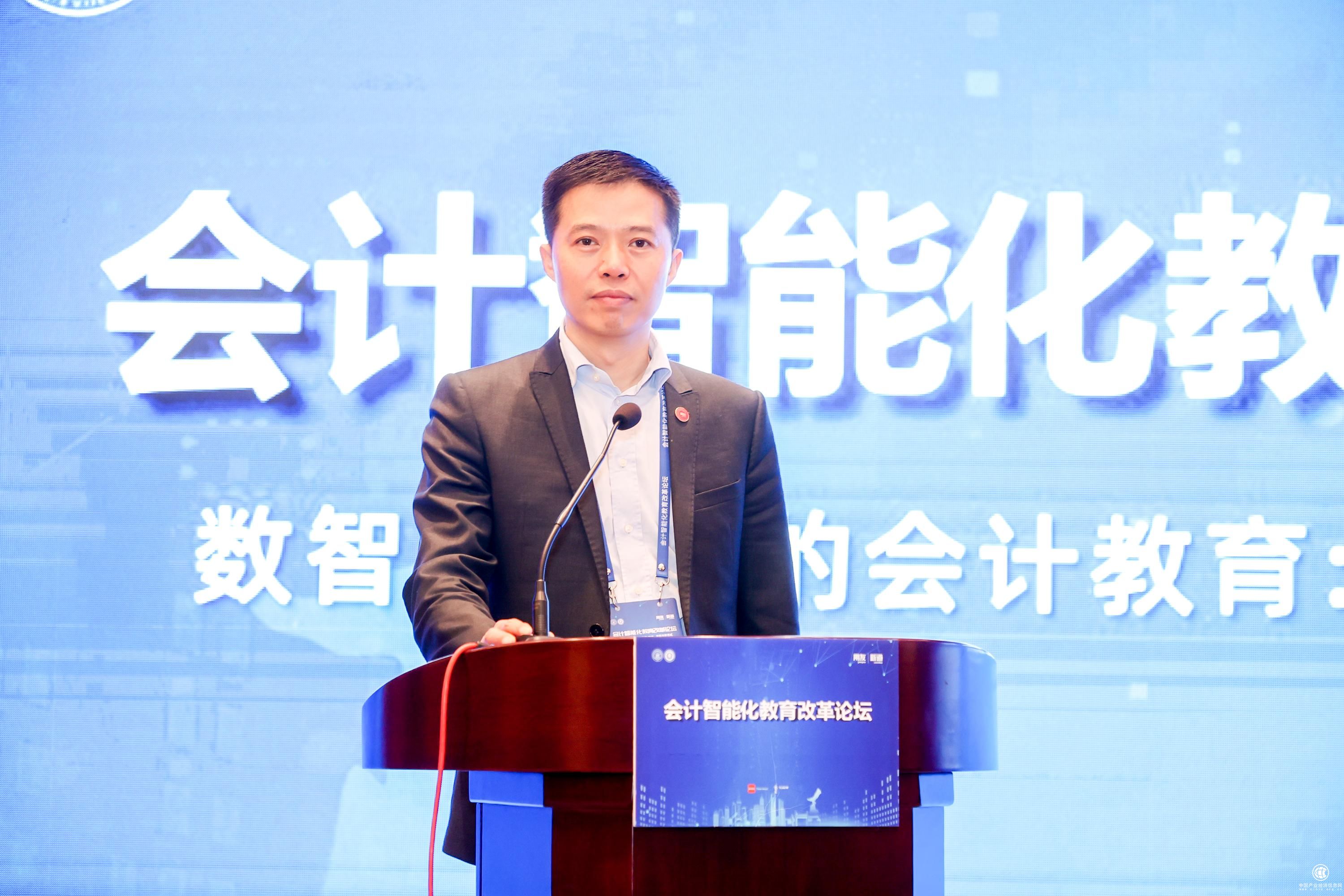 新道科技股份有限公司董事長兼總裁陳強(qiáng)兵在致辭中首先介紹了公司的發(fā)展歷程,他表示,隨著互聯(lián)網(wǎng)、大數(shù)據(jù)、云計(jì)算等新一代信息技術(shù)的發(fā)展,公司已經(jīng)完成了從以財(cái)務(wù)軟件為核心到以企業(yè)云服務(wù)為核心的迭代升級(jí),邁入了服務(wù)企業(yè)數(shù)智化轉(zhuǎn)型和商業(yè)創(chuàng)新的新階段。服務(wù)中國教育事業(yè),科技使能教育是公司的發(fā)展使命。未來,公司將進(jìn)一步深化產(chǎn)教融合,增進(jìn)校企合作,通過向高校開放智能云服務(wù)、行業(yè)真實(shí)案例、專家資源等方式助力高素質(zhì)數(shù)智化人才培養(yǎng),為推動(dòng)中國經(jīng)濟(jì)社會(huì)會(huì)計(jì)與財(cái)務(wù)領(lǐng)域的智能化轉(zhuǎn)型、中國會(huì)計(jì)教育發(fā)展貢獻(xiàn)自己的力量。