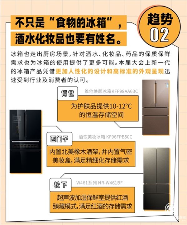 游戲電視成為電視市場新寵,電視擁有電競顯示器的諸多特質(zhì),同時作為家庭智慧大屏這一重要入口,電視廠商的智能化步伐也在進(jìn)一步加快,智慧大屏為消費(fèi)者提供沉浸式體驗和智能家居新生活。冰箱也走出廚房場景,針對酒水、化妝品、藥品的保質(zhì)保鮮需求也為冰箱的使用提供了更多可能,新一代的冰箱產(chǎn)品憑借更加人性化的設(shè)計和高標(biāo)準(zhǔn)的外觀呈現(xiàn)迅速受到消費(fèi)者的認(rèn)可,西門子冰箱就內(nèi)置美橡木酒架,并內(nèi)置氣密美妝盒,滿足今西華存儲需求。消費(fèi)者對于洗衣機(jī)的需求也更加細(xì)化,健康分區(qū)洗護(hù)方式已經(jīng)成為一種潮流,雙子、三桶洗衣機(jī)成網(wǎng)紅,分區(qū)成為潔凈新王道。