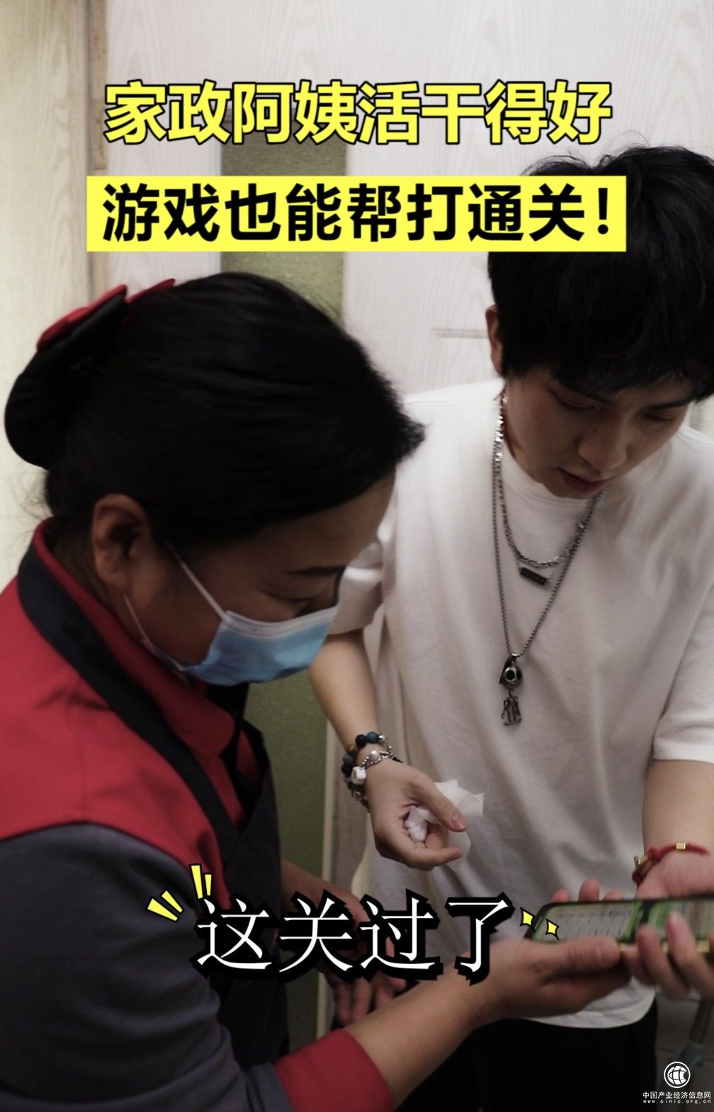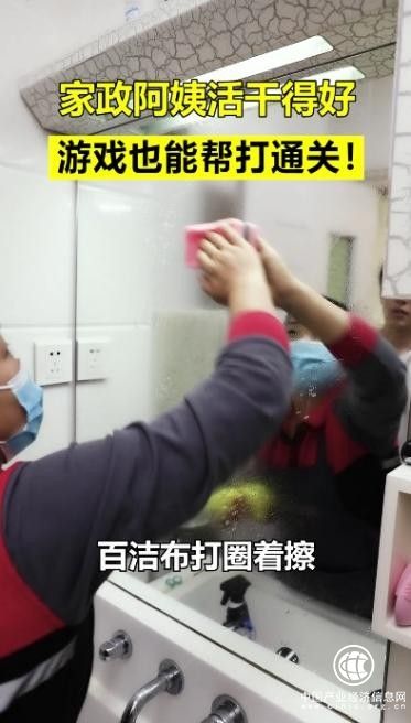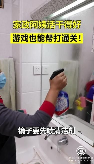 “這鏡子不是這么擦的,先噴上點清潔劑,然后用百潔布打圈擦,這樣才能把水漬、頑固污漬去掉。擦完后,用濕毛巾再走一遍?!睆囊曨l中不難看出,阿姨不僅游戲打得好,干起活來也是不含糊,還十分認真地教導著小伙如何擦玻璃。日常生活中,我們很多人對于部分家務其實存在誤區(qū),就像視頻中的小伙拿著女友的“卸妝濕巾”擦鏡子導致越擦越糊。而經(jīng)過訓練的阿姨會通過清潔劑、百潔布、濕毛巾等專業(yè)工具和操作解決家務難題。