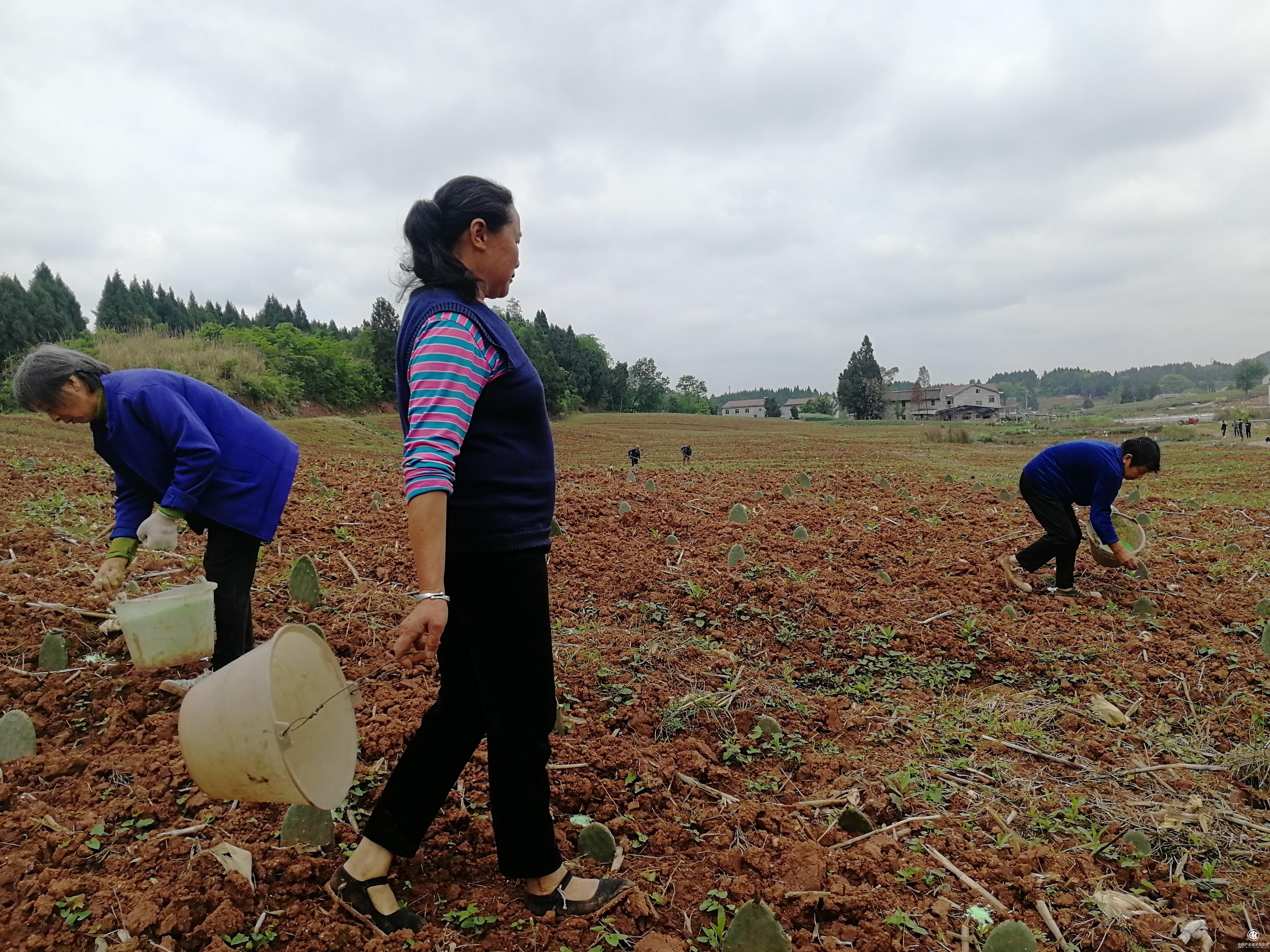 四月的五香廟村和其他村有些不一樣。在別的村,老百姓忙著種植水稻、割菜籽、種包谷。五香廟村的老百姓同樣也很忙,他們卻忙著在村上的種植基地里務工,施肥、除草、采摘、加工,每天都能掙到50~80元,一個月算下來,能夠收入上千元。