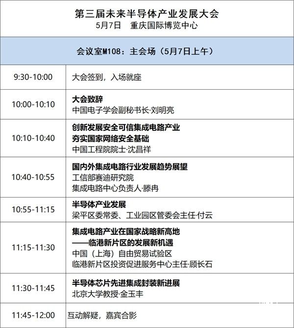 展會期間5月7日將舉辦第三屆未來半導(dǎo)體產(chǎn)業(yè)發(fā)展大會,邀請半導(dǎo)體電子領(lǐng)域權(quán)威專家、學(xué)者及產(chǎn)業(yè)鏈上下游企業(yè)齊聚一堂,聚焦行業(yè)政策、技術(shù)成果、市場投資、熱點難點等,共同探討半導(dǎo)體電子產(chǎn)業(yè)創(chuàng)新發(fā)展及未來趨勢。