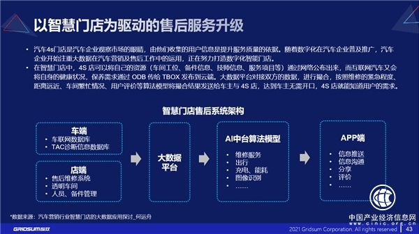 我國(guó)汽車(chē)產(chǎn)業(yè)隨著經(jīng)濟(jì)發(fā)展日益壯大,從2012 年我國(guó)汽車(chē)保有量不足 1 億,到 2019 年末達(dá) 2.4 億,7 年間增長(zhǎng) 1.5 倍,年復(fù)合增長(zhǎng)率達(dá) 16%。國(guó)內(nèi)汽車(chē)巨大的保有量與增長(zhǎng)速度也充分開(kāi)闊了汽車(chē)售后市場(chǎng),提供更優(yōu)質(zhì)的售后服務(wù)勢(shì)在必行,構(gòu)建數(shù)字化的售后服務(wù)體系,一是要實(shí)現(xiàn)以車(chē)聯(lián)網(wǎng)為驅(qū)動(dòng)的車(chē)內(nèi)數(shù)字化升級(jí);二是實(shí)現(xiàn)以智慧門(mén)店為驅(qū)動(dòng)的售后服務(wù)升級(jí)。