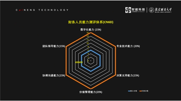 財(cái)能科技攜手國內(nèi)外知名財(cái)會學(xué)者、數(shù)字技術(shù)專家、企業(yè)CFO,進(jìn)行反復(fù)研討和論證,分析了數(shù)萬份財(cái)務(wù)人履歷的關(guān)鍵詞,基于浩繁深入的數(shù)據(jù)研究,經(jīng)過數(shù)次迭代優(yōu)化。財(cái)能科技發(fā)布了數(shù)字時(shí)代財(cái)務(wù)人員能力框架2.0,即財(cái)能六維模型——CN6D,從數(shù)字化能力、專業(yè)技術(shù)能力、決策支持能力、價(jià)值管理能力、協(xié)調(diào)溝通能力、團(tuán)隊(duì)領(lǐng)導(dǎo)能力進(jìn)行排序,形成一個(gè)人才畫像。