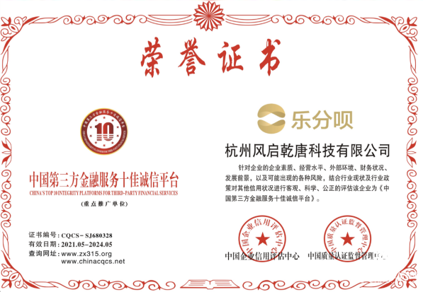 近日,以創(chuàng)新數(shù)字金融為核心的營銷支付平臺樂分唄的全國運(yùn)營總部杭州風(fēng)啟乾唐科技有限公司,憑借過硬的技術(shù)、創(chuàng)新的科技理念、誠信的市場運(yùn)營等多方面優(yōu)異表現(xiàn),榮膺《中國互聯(lián)網(wǎng)行業(yè)信用服務(wù)AAA級示范單位》、《中國第三方金融服務(wù)十佳誠信平臺》、《浙江省誠信質(zhì)量服務(wù)示范單位》等多項(xiàng)殊榮。