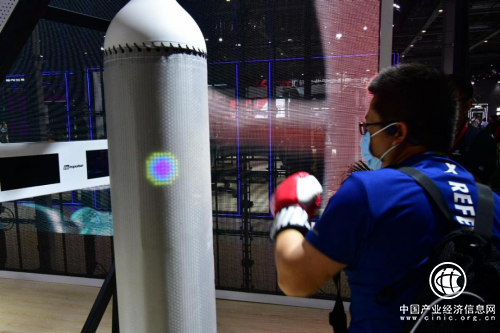 其中最受青睞的,當屬ISR007智能交互沙袋。在交織閃爍的觸屏光斑和鋼架內(nèi)置音響系統(tǒng)打造的運動環(huán)境中,體驗者通過擊打智能沙袋,即可獲得擊打數(shù)據(jù)(如精準度、速度、擊打次數(shù)、排名等),在玩的同時體驗運動的快感?!皶r尚”“科技”“熱血”“能激發(fā)鍛煉欲望”是眾多體驗者給出中肯的評價。