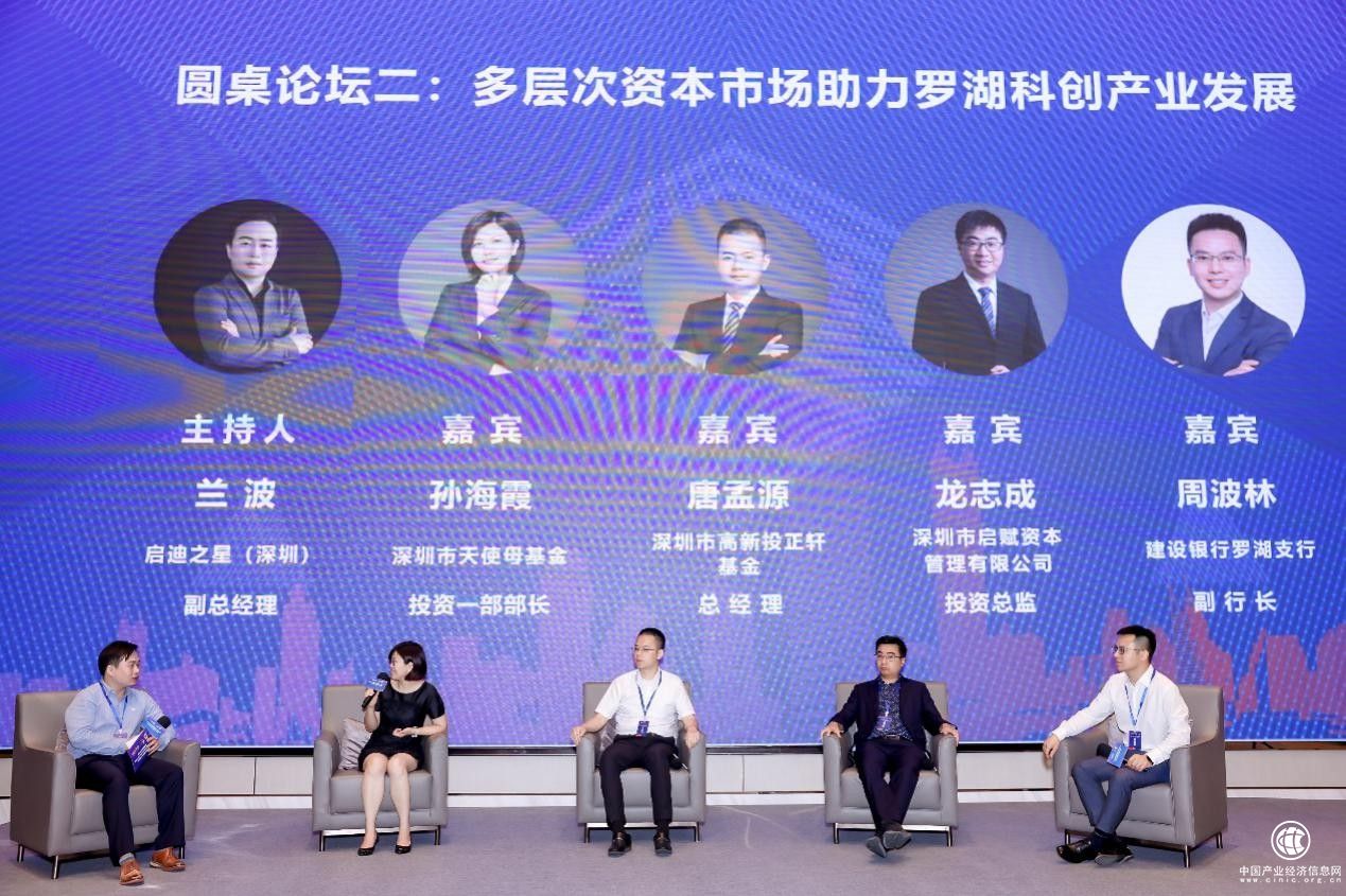 在第二場以“多層次資本市場助力羅湖科創(chuàng)產(chǎn)業(yè)發(fā)展”為主題的圓桌論壇中,主持人啟迪之星(深圳)副總經(jīng)理蘭波與主講嘉賓深圳市天使投資引導(dǎo)基金投資一部部長孫海霞、深圳市高新投正軒基金總經(jīng)理唐孟源、深圳市啟賦資本投資總監(jiān)龍志成、建設(shè)銀行羅湖支行副行長周波林,圍繞發(fā)揮羅湖自身科技金融產(chǎn)業(yè)優(yōu)勢,通過多層次資本市場協(xié)同助力科創(chuàng)產(chǎn)業(yè)發(fā)展展開熱烈討論。