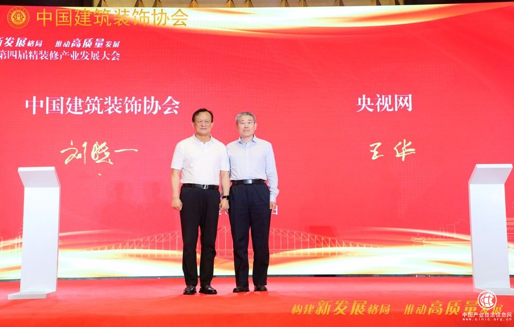 ▲中國建筑裝飾協(xié)會會長劉曉一、央視網(wǎng)副總編輯王華簽署戰(zhàn)略合作