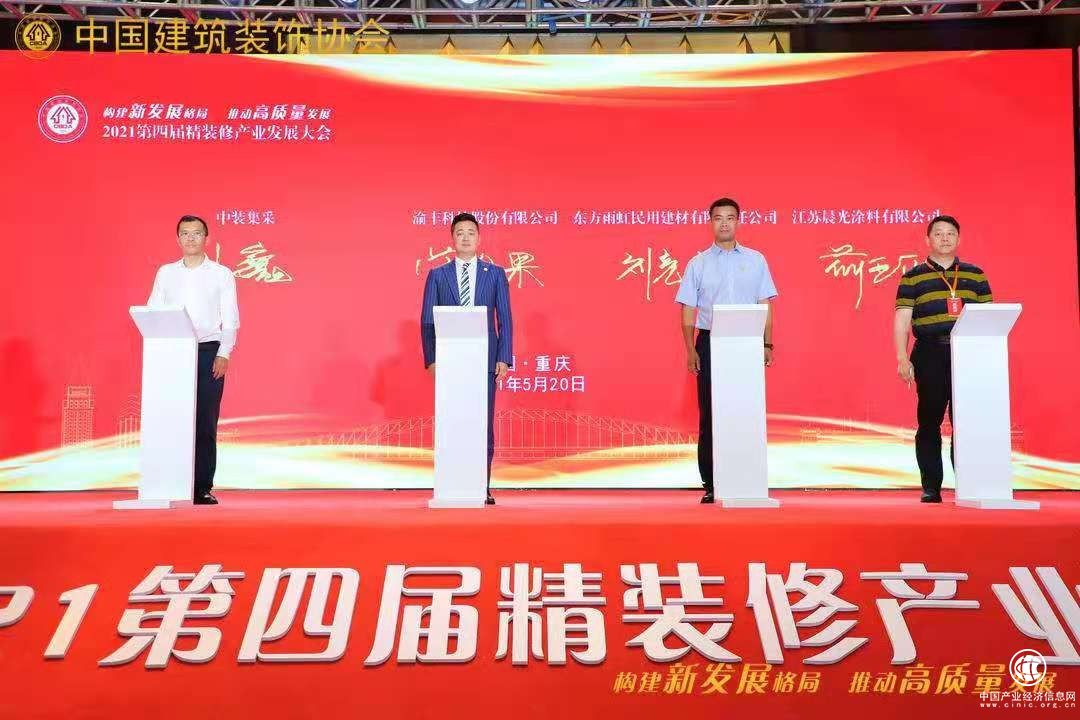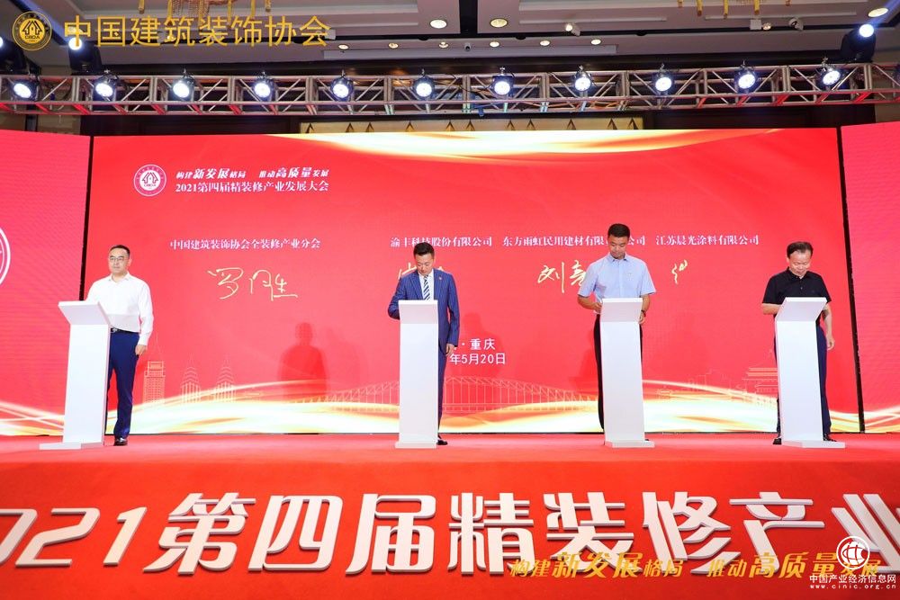 5月20日,由中國建筑裝飾協(xié)會主辦,中國建筑裝飾協(xié)會全裝修產(chǎn)業(yè)分會承辦,重慶市建筑裝飾協(xié)會、成都市建筑裝飾協(xié)會聯(lián)合協(xié)辦的“構(gòu)建新發(fā)展格局 推動高質(zhì)量發(fā)展”——第四屆精裝修產(chǎn)業(yè)發(fā)展大會在重慶隆重召開。中國建筑裝飾協(xié)會會長劉曉一、中國建筑裝飾協(xié)會副會長、重慶港慶建筑裝飾有限公司董事長鄒建、央視網(wǎng)副總編輯王華、上海城建職業(yè)學(xué)院黨委書記褚敏、中國建筑裝飾協(xié)會全裝修產(chǎn)業(yè)分會會長、浙江亞廈裝飾股份有限公司聯(lián)席總裁王文廣、中國建筑裝飾協(xié)會全裝修產(chǎn)業(yè)分會秘書長羅勝、重慶市建筑裝飾協(xié)會會長劉冰野、重慶市建筑裝飾協(xié)會名譽會長丁域慶、重慶市建筑裝飾協(xié)會秘書長韓波、廣西建筑裝飾協(xié)會會長龐耀國、上海市裝飾裝修行業(yè)協(xié)會秘書長沙峰、成都市建筑裝飾協(xié)會副會長兼秘書長文武、宜昌市建筑裝飾協(xié)會副會長兼秘書長康志平等領(lǐng)導(dǎo),全國各地裝飾企業(yè)負責(zé)人、地產(chǎn)企業(yè)代表、材料品部企業(yè)代表以及教育界和新聞界代表近600人出席本次大會。
