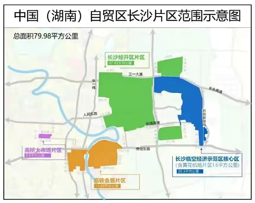 中國(湖南)自貿(mào)區(qū)長沙片區(qū)范圍示意圖