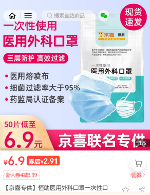 恒助品牌“京喜獨有生產(chǎn)線”,定制下沉新興市場的醫(yī)用口罩