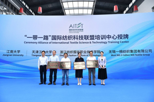 本次大會也對首批入選“一帶一路”國際紡織科技聯(lián)盟培訓(xùn)中心的浙江紡織服裝職業(yè)技術(shù)學(xué)院、江南大學(xué)紡織科學(xué)與工程學(xué)院、天津工業(yè)大學(xué)國際交流與合作處、無錫一棉紡織集團(tuán)有限公司授牌,并為浙江壹布互聯(lián)科技有限公司和浙江中多控股有限公司授予“中國紡織工程學(xué)會技術(shù)研發(fā)中心”稱號。