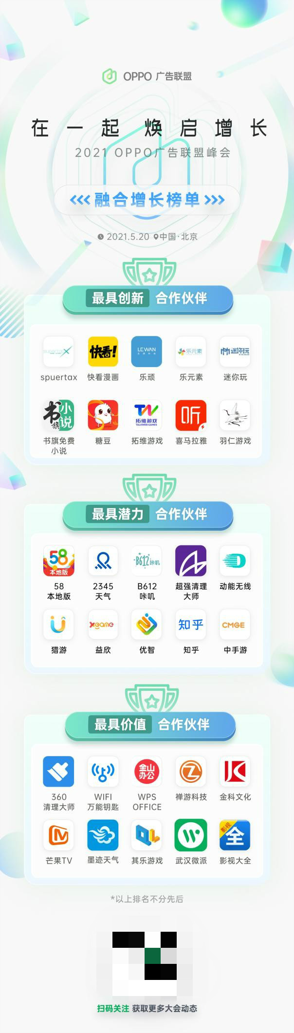 峰會最后,OPPO廣告聯(lián)盟頒布了最具創(chuàng)新合作伙伴、最具潛力合作伙伴,以及最具價值合作伙伴相關(guān)獎項,并表示將始終堅持開放共贏的合作態(tài)度,持續(xù)關(guān)注和探索開發(fā)者的商業(yè)增長痛點,以更優(yōu)質(zhì)的產(chǎn)品解決方案和服務、更大力度的扶持計劃,幫助開發(fā)者實現(xiàn)商業(yè)化增長。