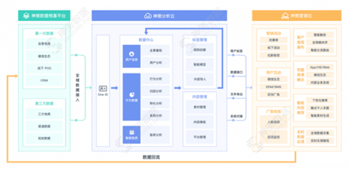 神策數(shù)據(jù)根基平臺(tái)通過全域數(shù)據(jù)接入和整合,真實(shí)還原消費(fèi)者足跡;神策分析云通過數(shù)據(jù)中心和標(biāo)簽管理,助力企業(yè)實(shí)現(xiàn)精細(xì)化運(yùn)營;神策營銷云幫助企業(yè)實(shí)現(xiàn)全渠道精準(zhǔn)觸達(dá),并通過實(shí)時(shí)數(shù)據(jù)反饋完成數(shù)字化閉環(huán)運(yùn)營。