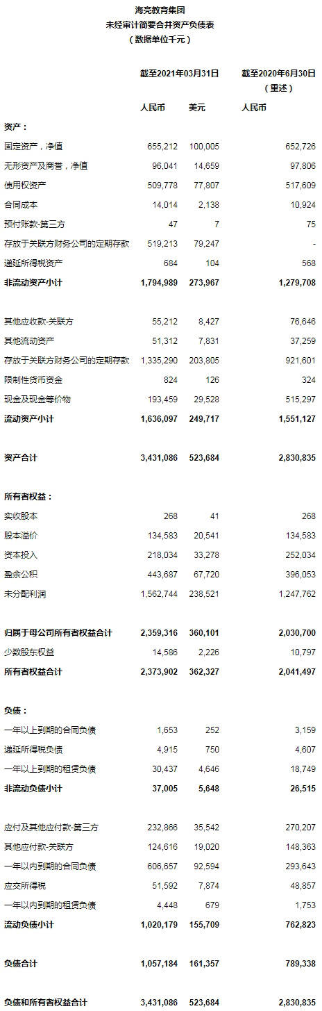 2021財(cái)年前九個(gè)月,公司經(jīng)營活動(dòng)產(chǎn)生的凈現(xiàn)金流入為人民幣7.286億元(1.112億美元),較去年同期的人民幣2.818億元增長158.6%,主要是由于本期收到的學(xué)費(fèi)大幅增長。用于投資活動(dòng)的凈現(xiàn)金流出為人民幣10.238億元(1.563億美元),去年同期為人民幣3.021億元,增長主要是由于本期支付金華外國語收購款人民幣3400萬元,及存入關(guān)聯(lián)方財(cái)務(wù)有限公司的定期存款較去年增加。用于融資活動(dòng)的凈現(xiàn)金流出為2,572萬元(393萬美元),去年同期為人民幣5,735萬元,減少主要是本期未向少數(shù)股東分紅,且歸還關(guān)聯(lián)方借款金額較去年同期減少所致。