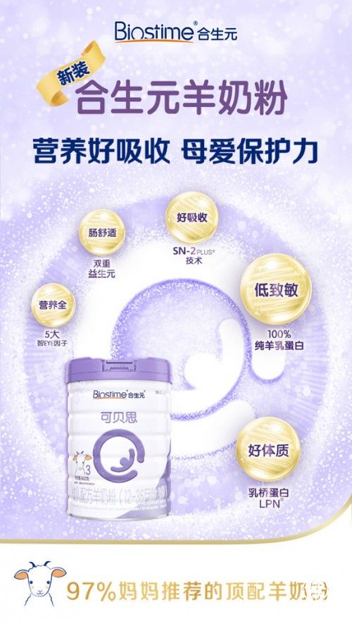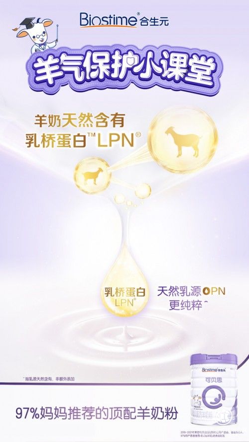嬰幼兒羊奶粉排行榜中的合生元羊奶粉天然蘊(yùn)含乳橋蛋白LPN