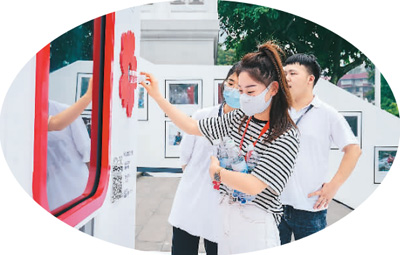 在2021中國(guó)互聯(lián)網(wǎng)公益峰會(huì)上,參會(huì)者正通過(guò)投入空塑料瓶來(lái)兌換公益禮品。資料圖片