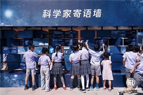 孩子們在騰訊青少年科學小會現(xiàn)場駐足瀏覽百位科學家送給他們的寄語